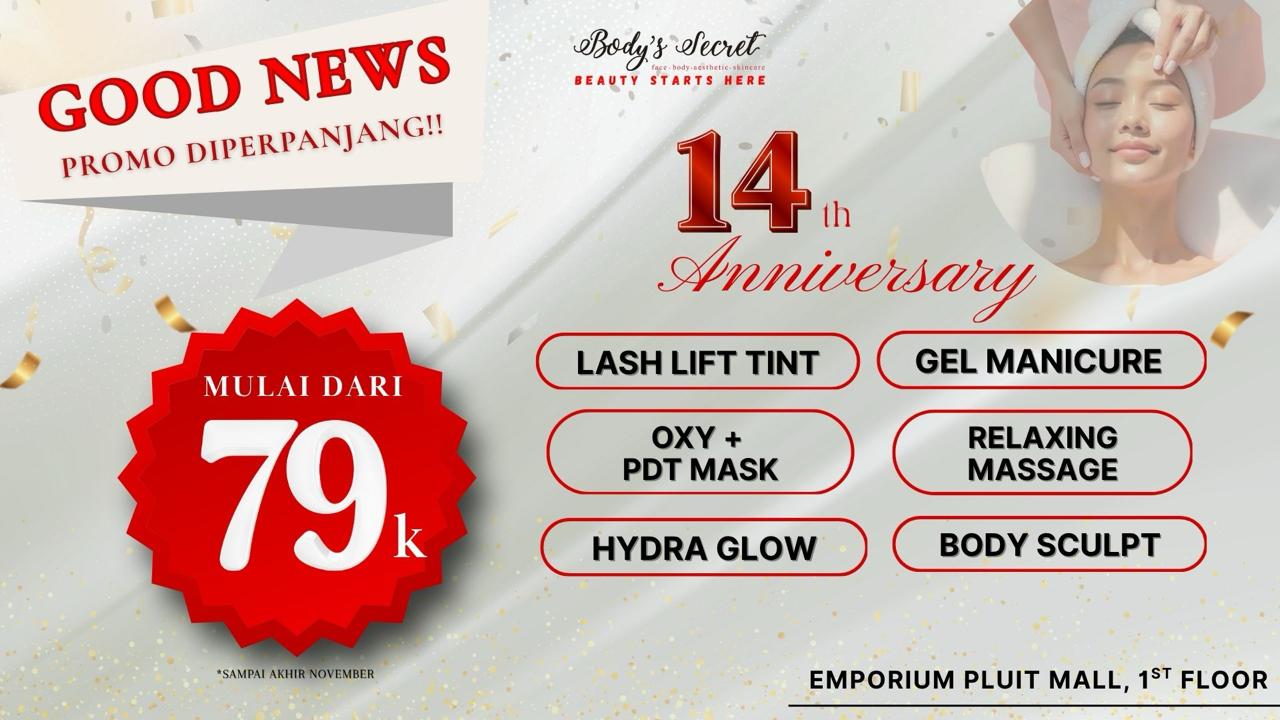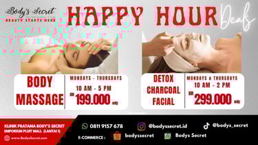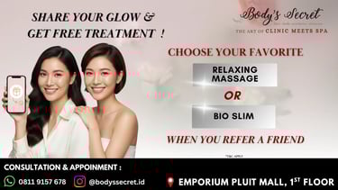 Segera kunjungi Body's Secret dan rasakan perbedaan hasil treatment yang dirancang secara khusus untuk memenuhi kebutuhan anda