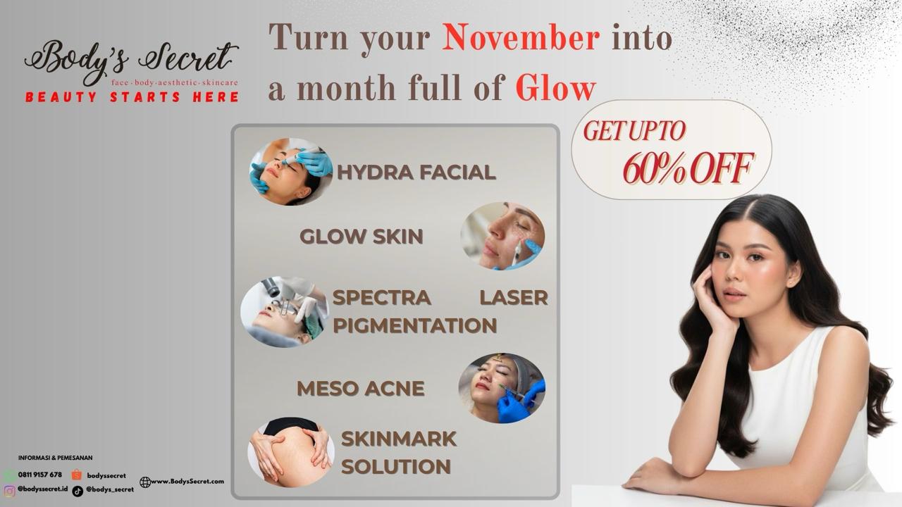 Body's Secret merupakan klinik kecantikan terpercaya selama 14 tahun yang telah banyak membantu mengatasi permasalahan pada kulit wanita. Body's Secret juga menawarkan ragam solusi dengan perawatan wajah, badan, kecantikan dan kulit serta menggunakan produk yang inovatif.