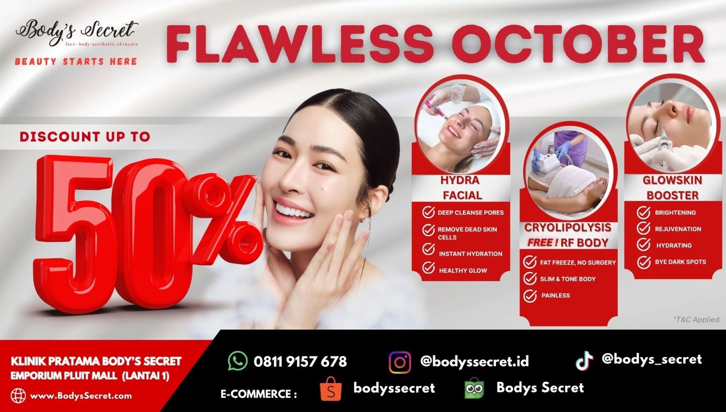 Body's Secret merupakan klinik kecantikan terpercaya selama 13 tahun yang telah banyak membantu mengatasi permasalahan pada kulit wanita. Body's Secret juga menawarkan ragam solusi dengan perawatan wajah, badan, kecantikan dan kulit serta menggunakan produk yang inovatif.