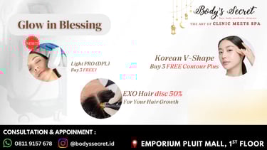 Body's Secret merupakan klinik kecantikan terpercaya selama 14 tahun yang telah banyak membantu mengatasi permasalahan pada kulit wanita. Body's Secret juga menawarkan ragam solusi dengan perawatan wajah, badan, kecantikan dan kulit serta menggunakan produk yang inovatif.